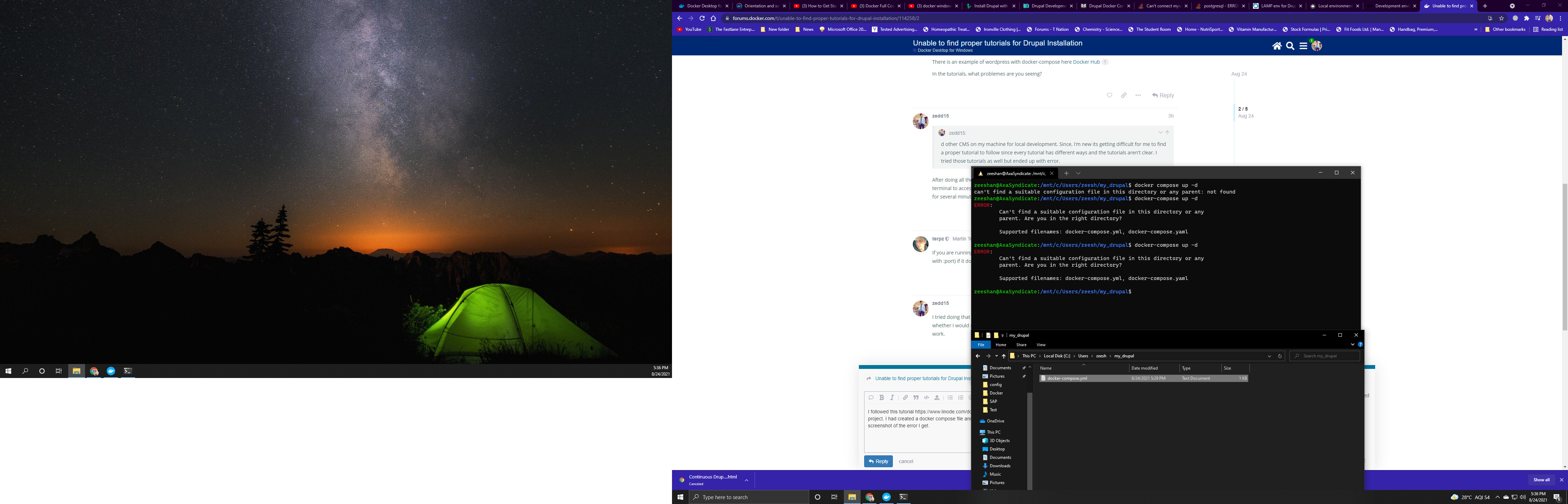 I followed this tutorial Install Drupal with Docker Compose | Linode to build my Drupal project. I had created a docker compose file and executed docker-compose up -d command. Below are screenshot of the error I get.